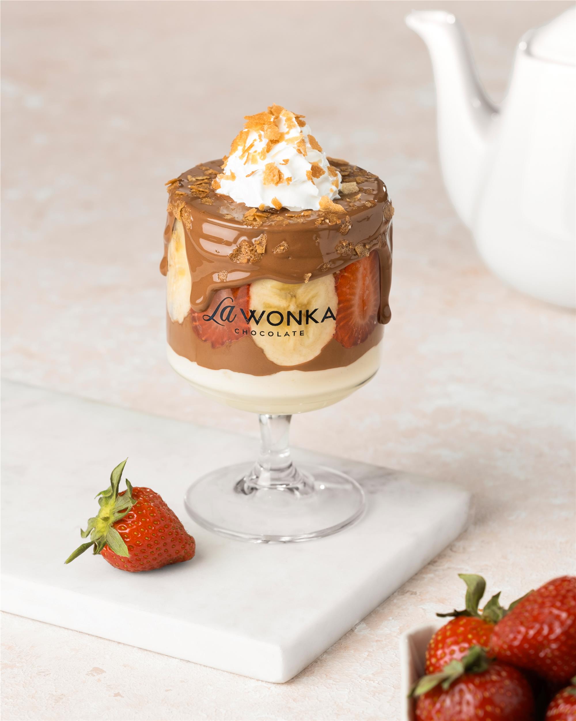 La Wonka’nın özel sade kremasıyla güzelleşen sade pandispanya kek parçaları, taptaze çilek ve muz dilimleri ile buluşarak damaklarda adeta bir şenlik yaratıyor. Çıtır çıtır krep kırıkları ve özel sütlü Belçika çikolatası ise yiyenleri mest ediyor. Şeflera Junior'ı hemen sipariş edebilir veya ekstra çikolata isteyerek bu lezzeti daha da zenginleştirebilirsiniz.